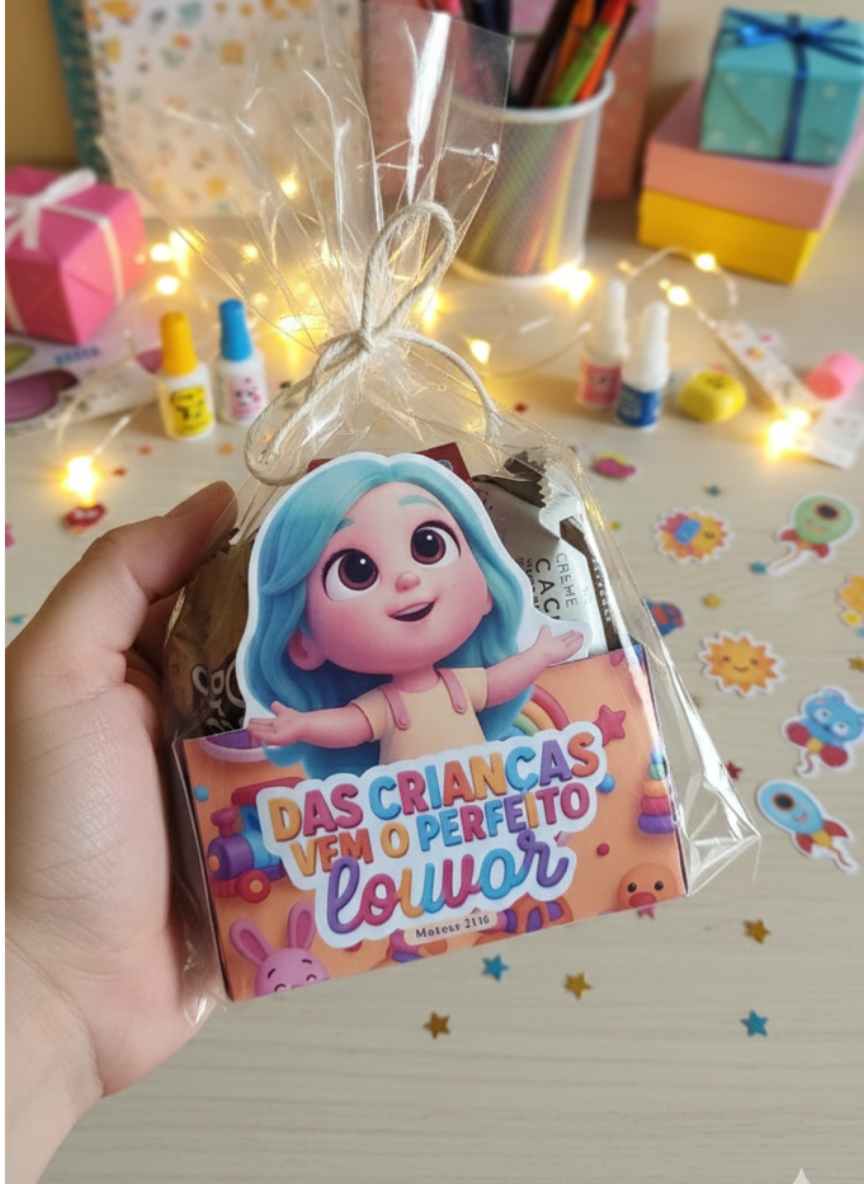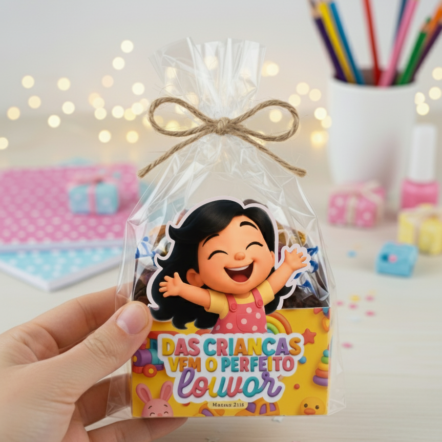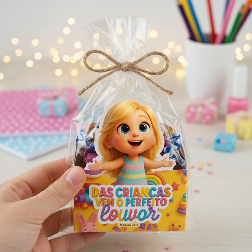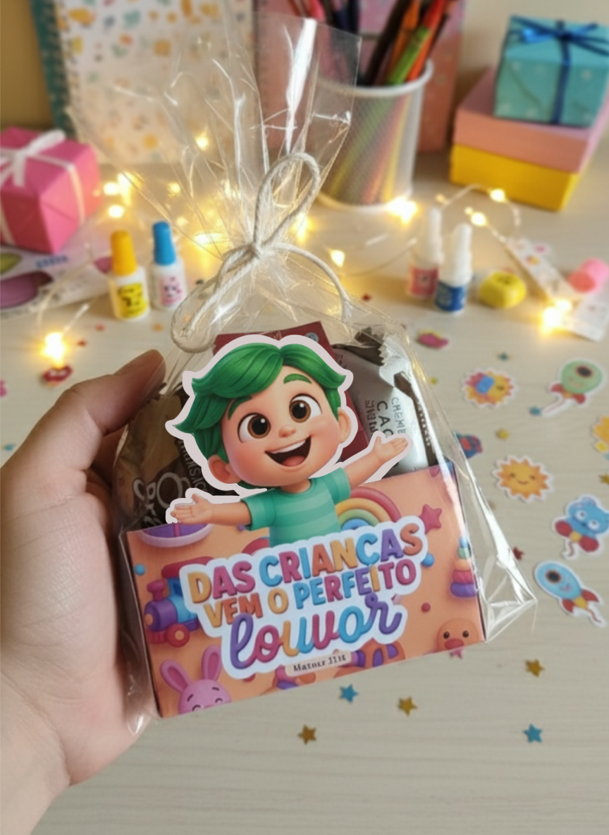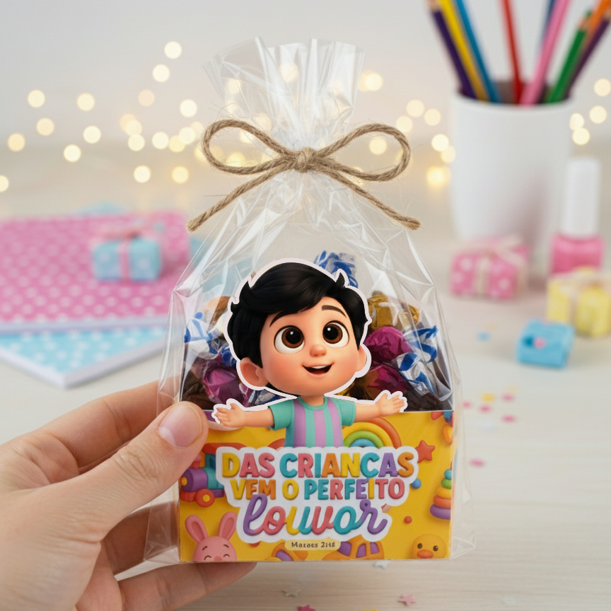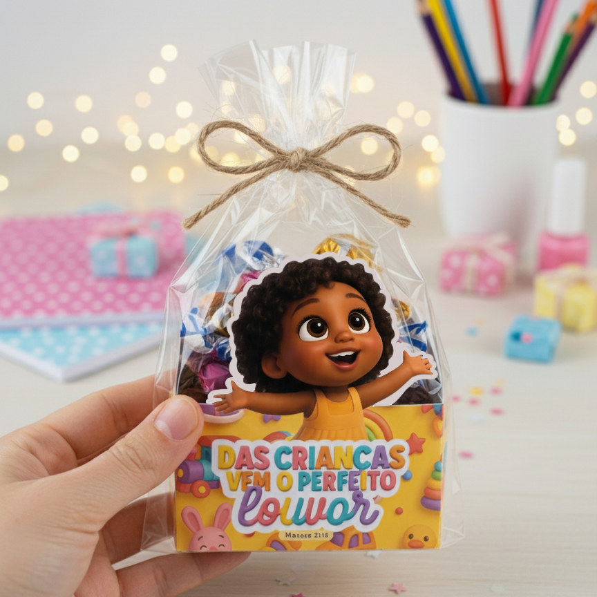 Transforme qualquer evento infantil em um momento inesquecível com essa caixinha de doces personalizada e cheia de significado! Esse produto foi desenvolvido especialmente para igrejas, escolas, ministérios infantis, festas temáticas e até para quem deseja presentear as crianças com carinho e propósito.