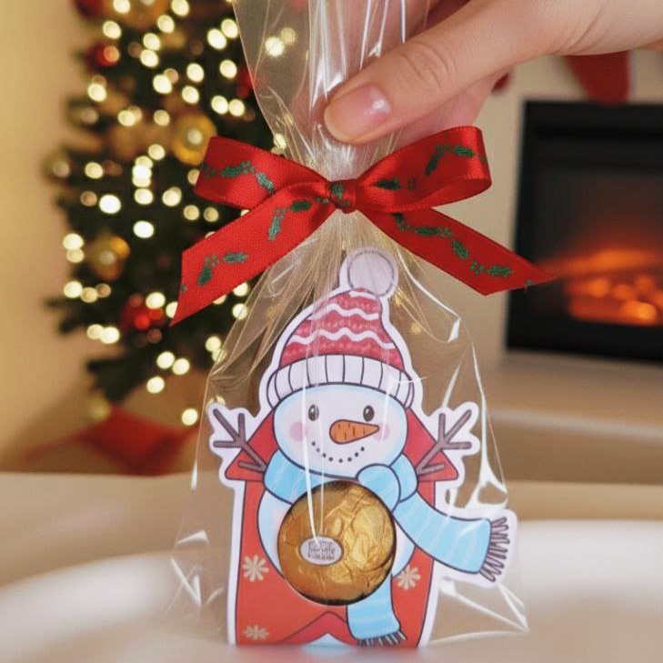 Este mimo traz um boneco de neve adorável, com ilustração exclusiva e acabamento delicado, perfeito para presentear no Natal. Ele possui um espaço circular para encaixar um bombom (como Ferrero, Sonho de Valsa, Ouro Branco ou similares), transformando o docinho em parte da própria arte — como se fosse a “barriguinha do boneco de neve”.